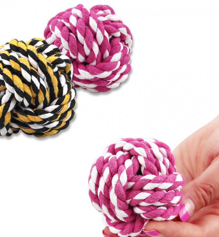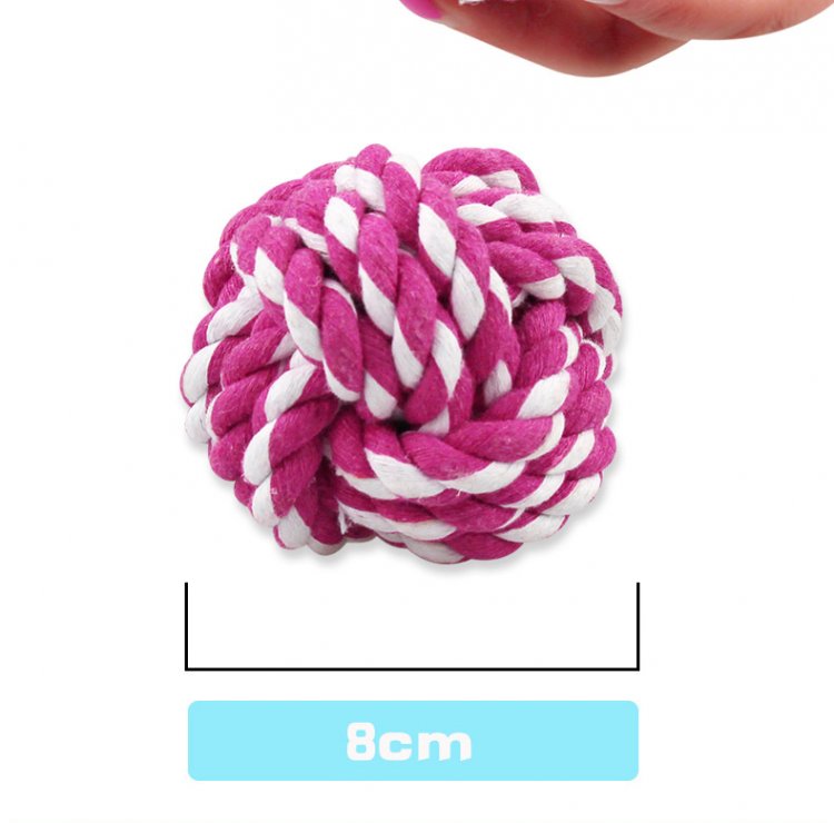 - Main Ingredients: Cotton Rope Weaving - Soft and durable - Gentle on teeth and gums, No stuffing means no mess - Help your pet stay away from your furniture, drapes and wardrobe - A fun pet ball to keep your dog mentally and physically stimulated! - Size: 2.4" wide (6cm)