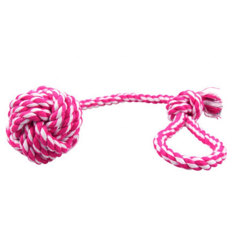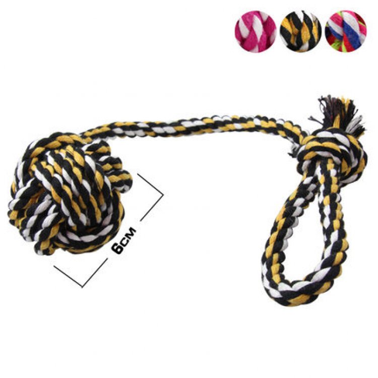 Same as Woven bite ball but with additional rope of 12" (35cm). - Main Ingredients: Cotton Rope Weaving - Soft and durable - Gentle on teeth and gums, No stuffing means no mess - Help your pet stay away from your furniture, drapes and wardrobe - A fun pet ball to keep your dog mentally and physically stimulated! - Size: 2.4" wide (6cm)
